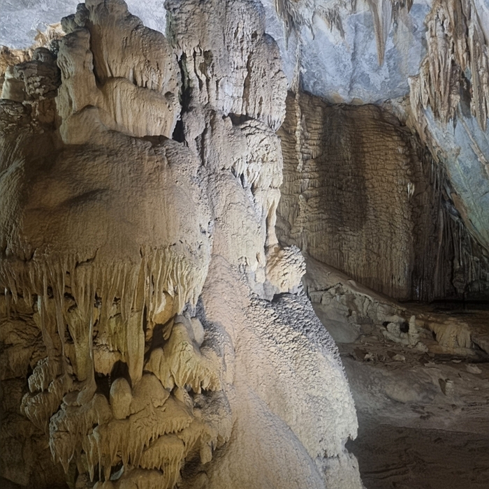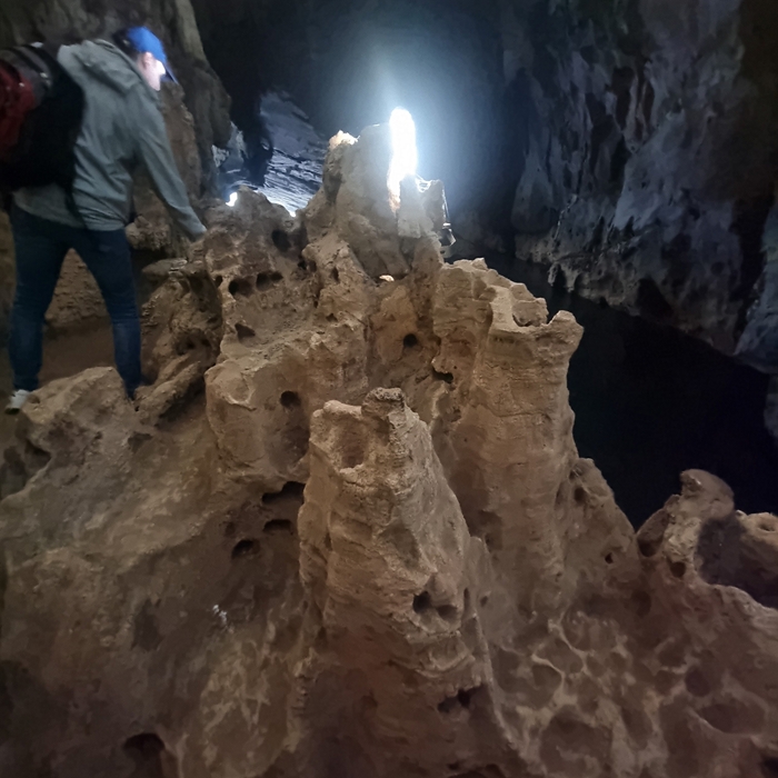 Ta jaskinia jest nieco bardziej dzika i mniej rozwinięta niż inne popularne jaskinie w parku, co przyciąga turystów szukających przygody i naturalnych wrażeń. Aby dostać się do wnętrza jaskini, odwiedzający często biorą udział w ekscytujących działaniach takich jak zjazdy na linie, kajakarstwo lub pływanie przez chłodne wody rzeczne prowadzące do wejścia. Wewnątrz jaskini znajduje się unikalne, naturalne błotniste spa, gdzie błoto bogate w minerały tworzy naturalne baseny. Błoto to jest znane z jego właściwości pielęgnacyjnych, co dodaje atrakcyjności tej lokalizacji. Oprócz tego, stalaktyty i stalagmity oraz inne formacje krasowe tworzą niesamowite, naturalne dzieła sztuki, które można podziwiać podczas eksploracji.
