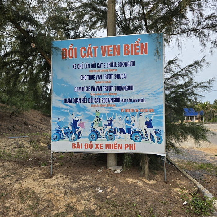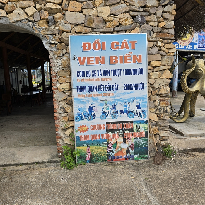 Piękne białe wydmy, które znajdują się tylko kilka kilometrów od Dong Hoi, a można się tam świetnie bawić. Najwyższa ma wysokość 100m i można się tam wspiąć lub wypożyczyć quad-a i wyjechać nim na szczyt. Można również wypożyczyć deskę od lokalnych mieszkańców i pozjeżdżać na piasku, my nie skorzystaliśmy z tych atrakcji, wyszliśmy na szczyt sami, by podziwiać widoki i cieszyć się ciszą i spokojem, jaki nam towarzyszył ze względu na to, że sezon tutaj rozpocznie się dopiero za jakiś czas.